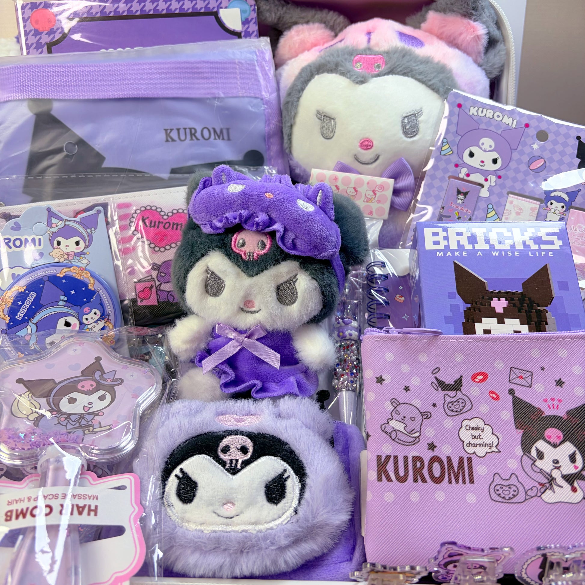 What you might get: water bottle, eyemask, comb, wallet, plush bag, plush toy, plush keychain, pencil case, stationery set(5 items), bookmark, makeup bag and other surprises!